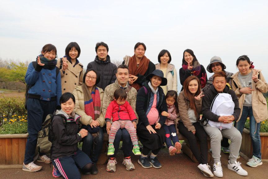 ピクニックの集合写真ができました!本当に良いお天気の中、この日一番咲いていた桜の前で写真を撮りました。