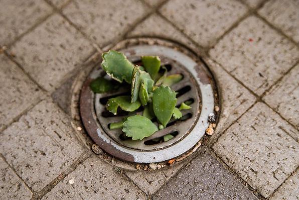 葉の周りに子供の葉がつぶになってついていて、それが落ちて排水口からも芽が出ていました。