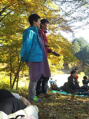 お腹が満たされた後は、本日いらしていた妊婦さんのご主人で里山遊びのプロの方にお願いして、簡単なレクリエーションをしました。さすが、簡単な手遊びですが、小さなお子さんから大人も楽しめるものを教えてもらい楽しかった!