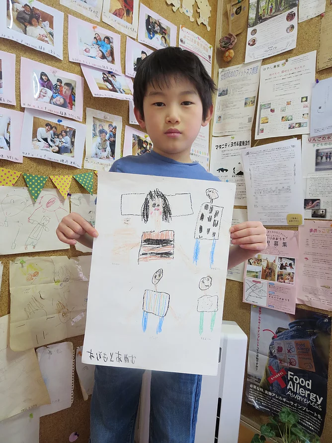 先日ピクニック後の出産第一号のAさんを報告しました。その時に5歳のお兄ちゃんが立ち会いましたが素敵な絵を描いてくれました。