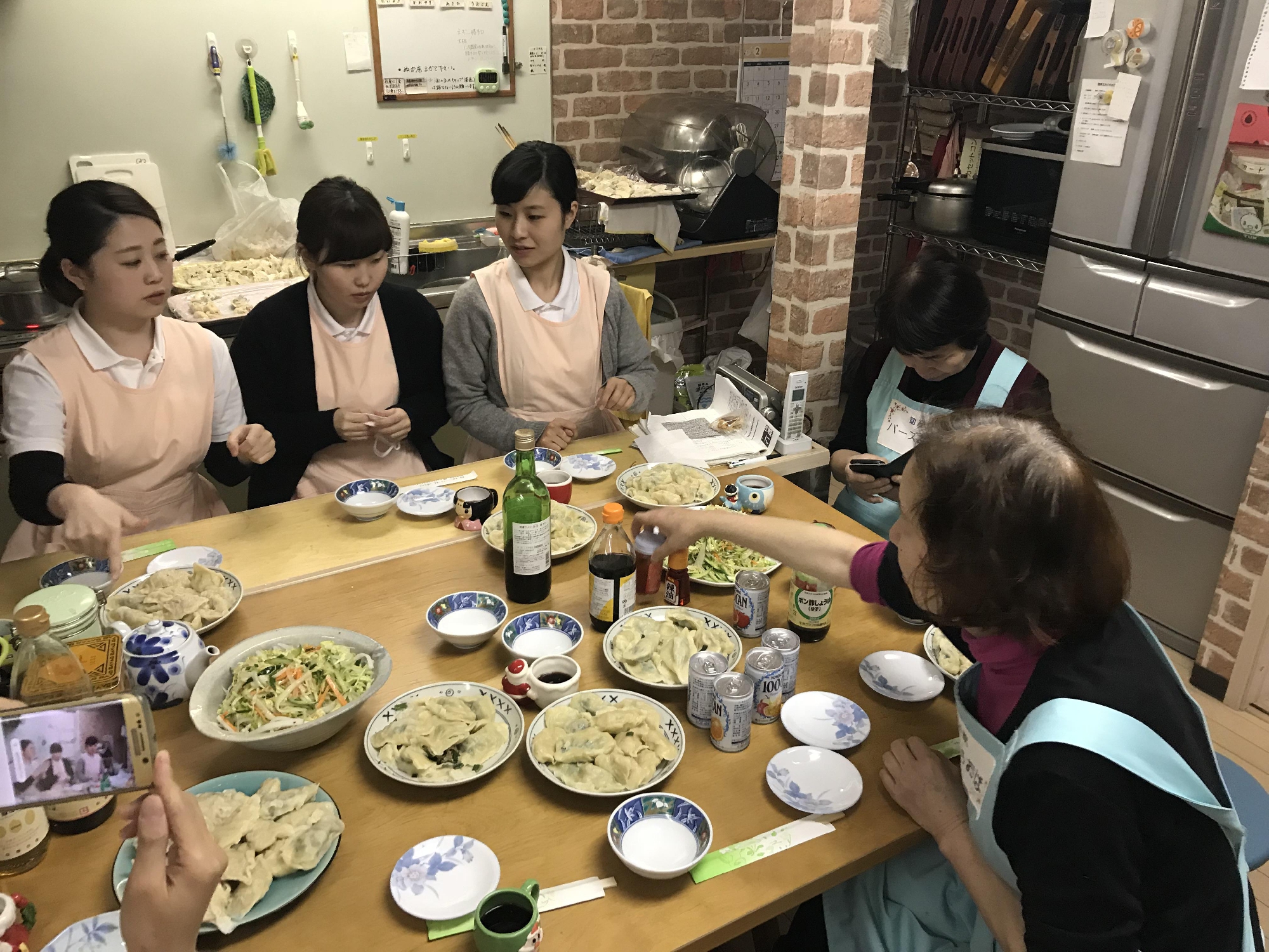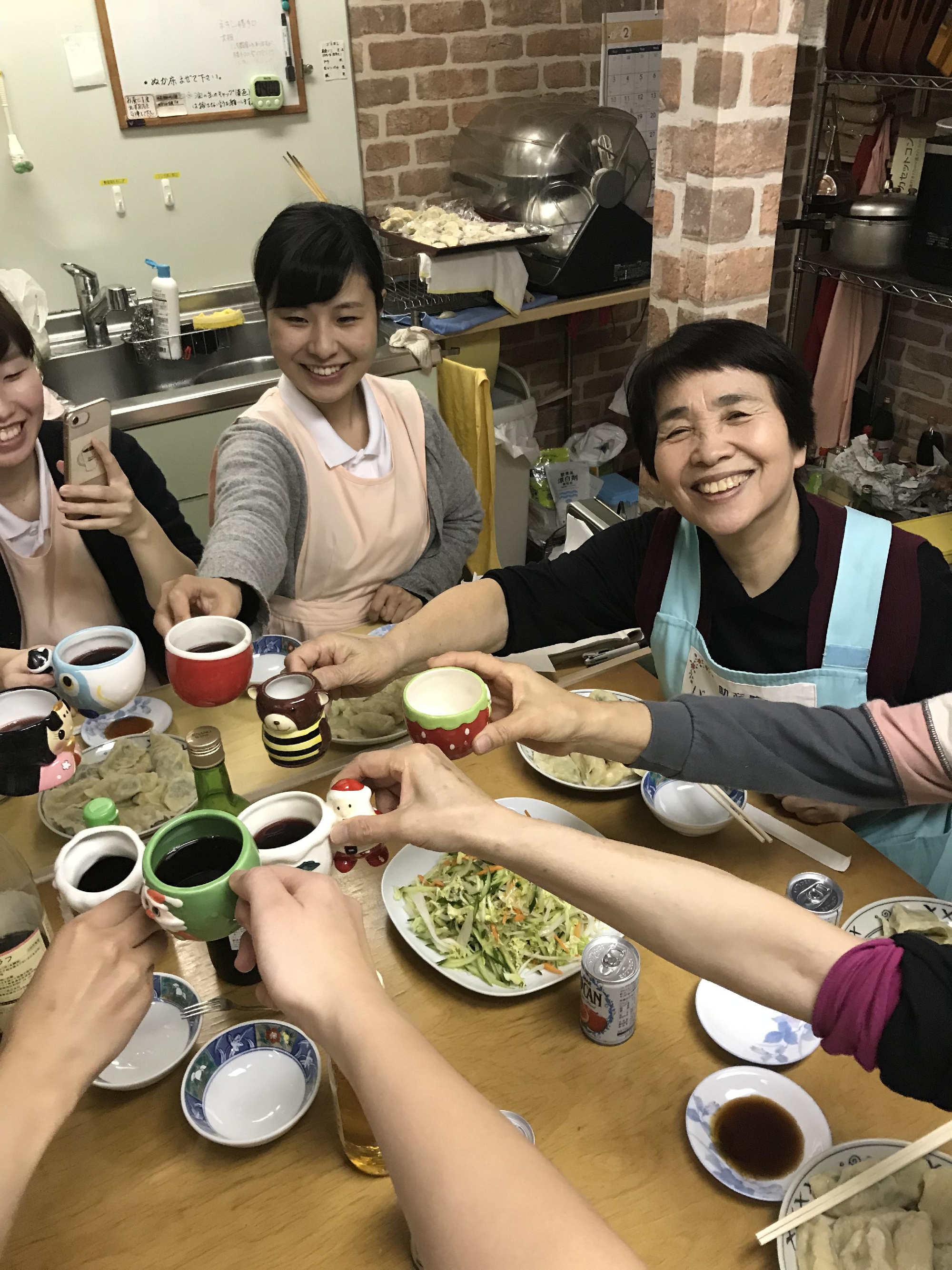 今月は国際医療福祉大学大学院の学生さんが、5週間の泊まり込みで実習にきています。5週間も泊まり込む学校はここだけです。今週でその長い実習も終わりになりますが、息抜きもかねて餃子パーティーをしました!