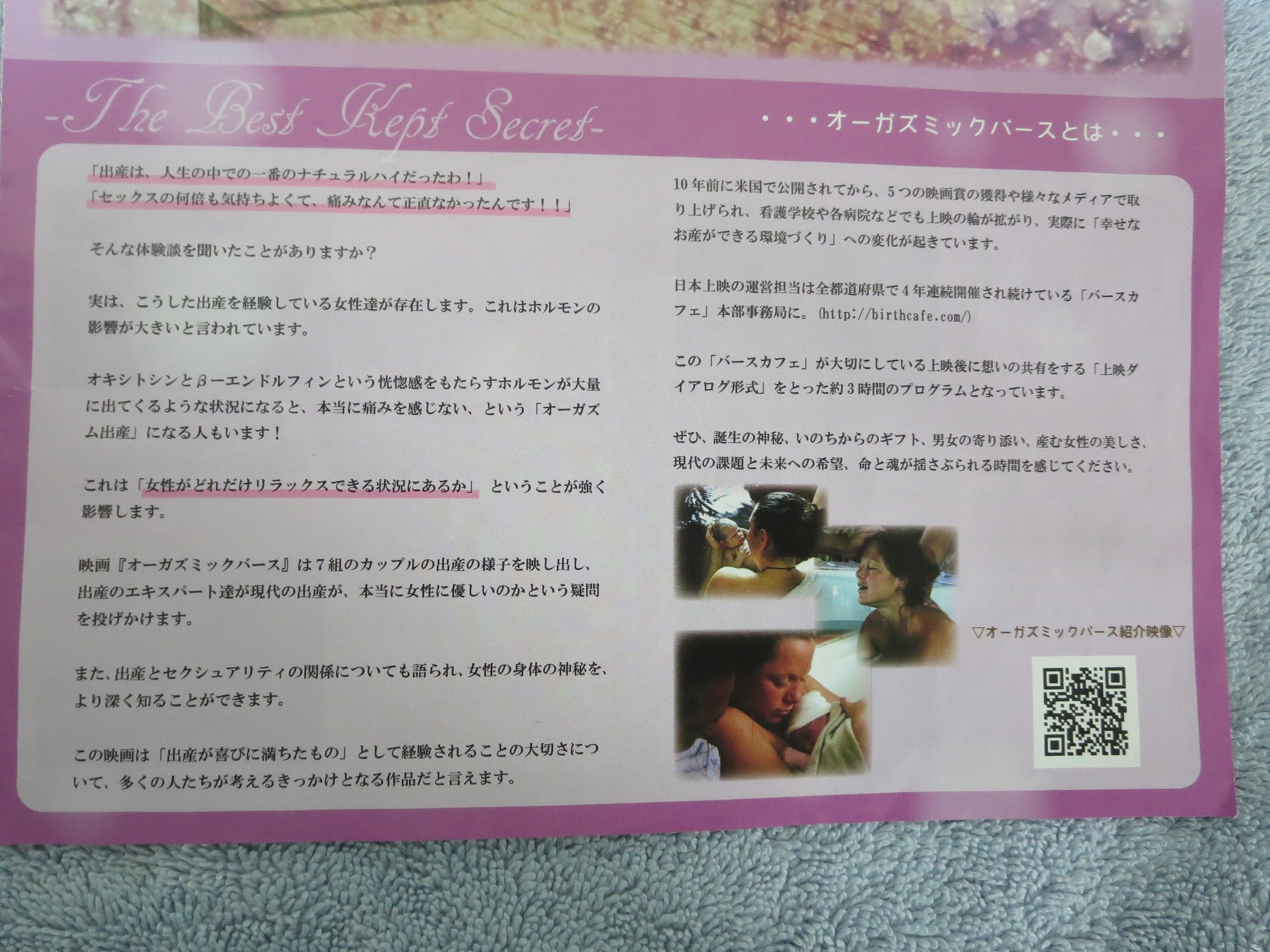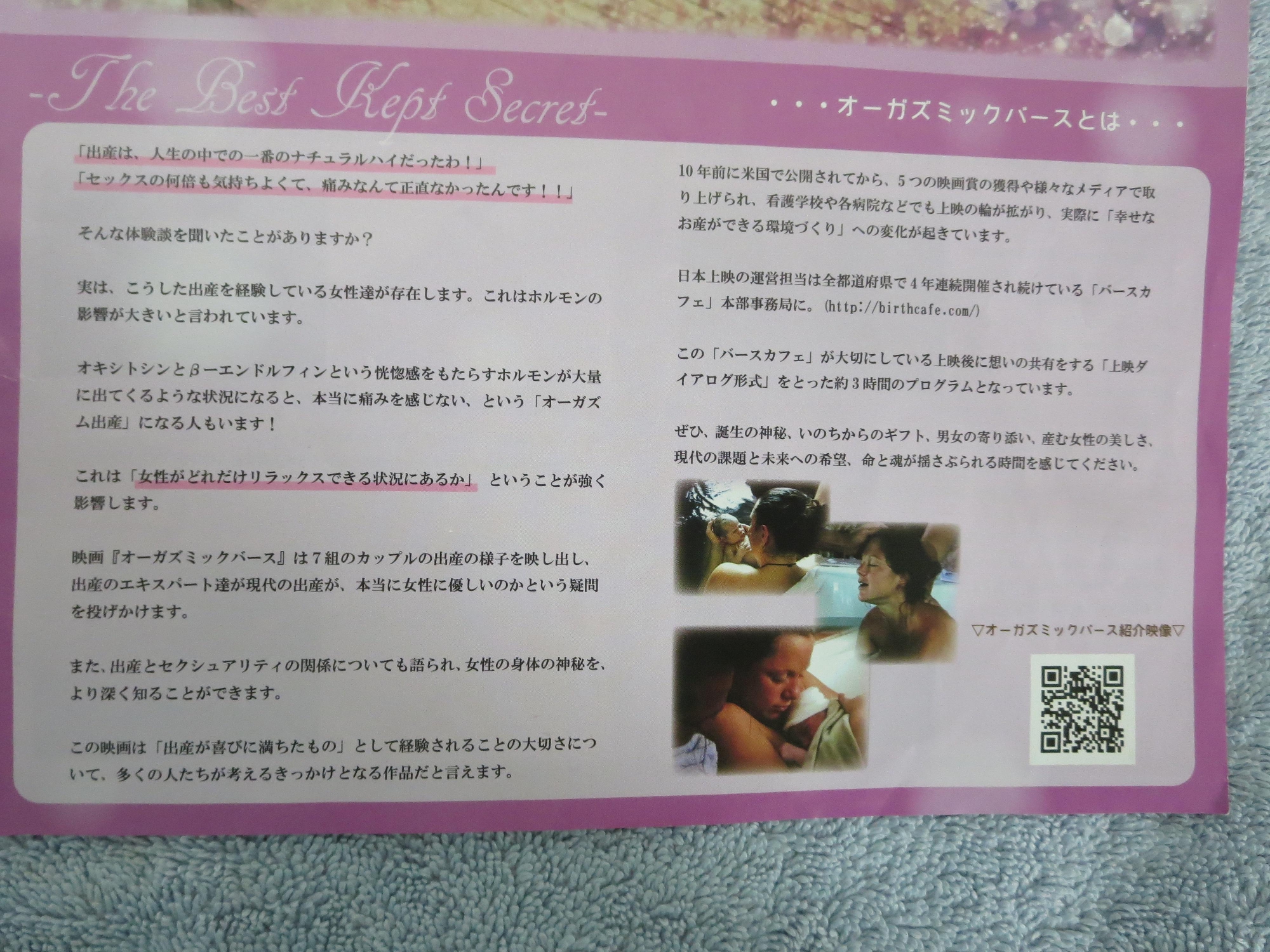 オーガズミックバース映画上映を行います。