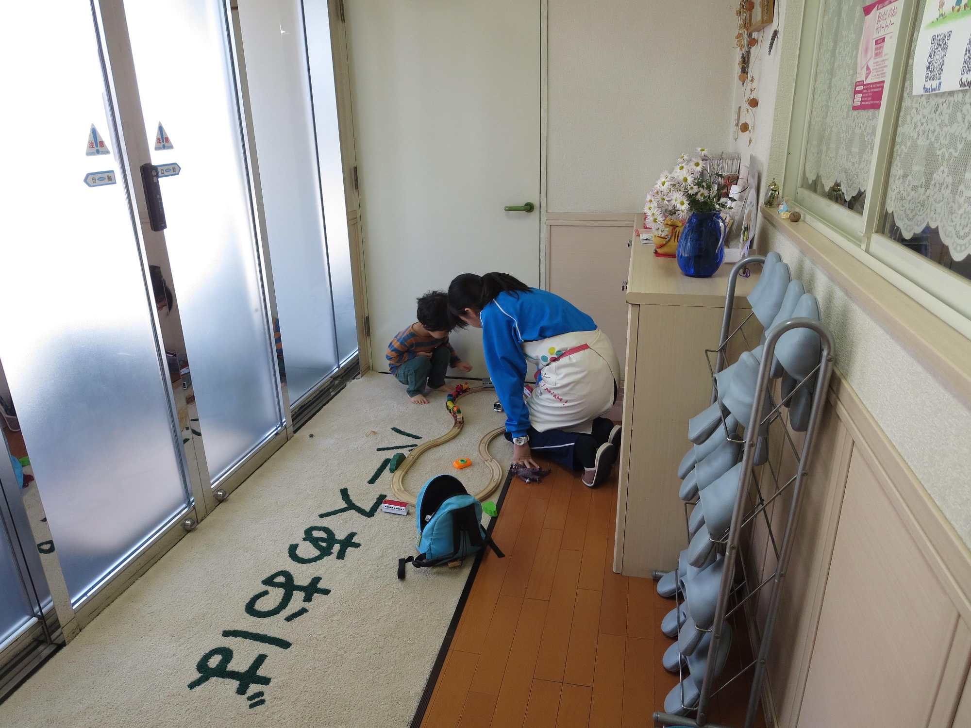 妊婦健診にきた妊婦さんの足を一生懸命にマッサージしてくれたり、産後に入院中のかたの上のお子さんの相手をしてくれて、その間にママがお昼寝。お掃除したり、新生児の抱っこを体験したり。