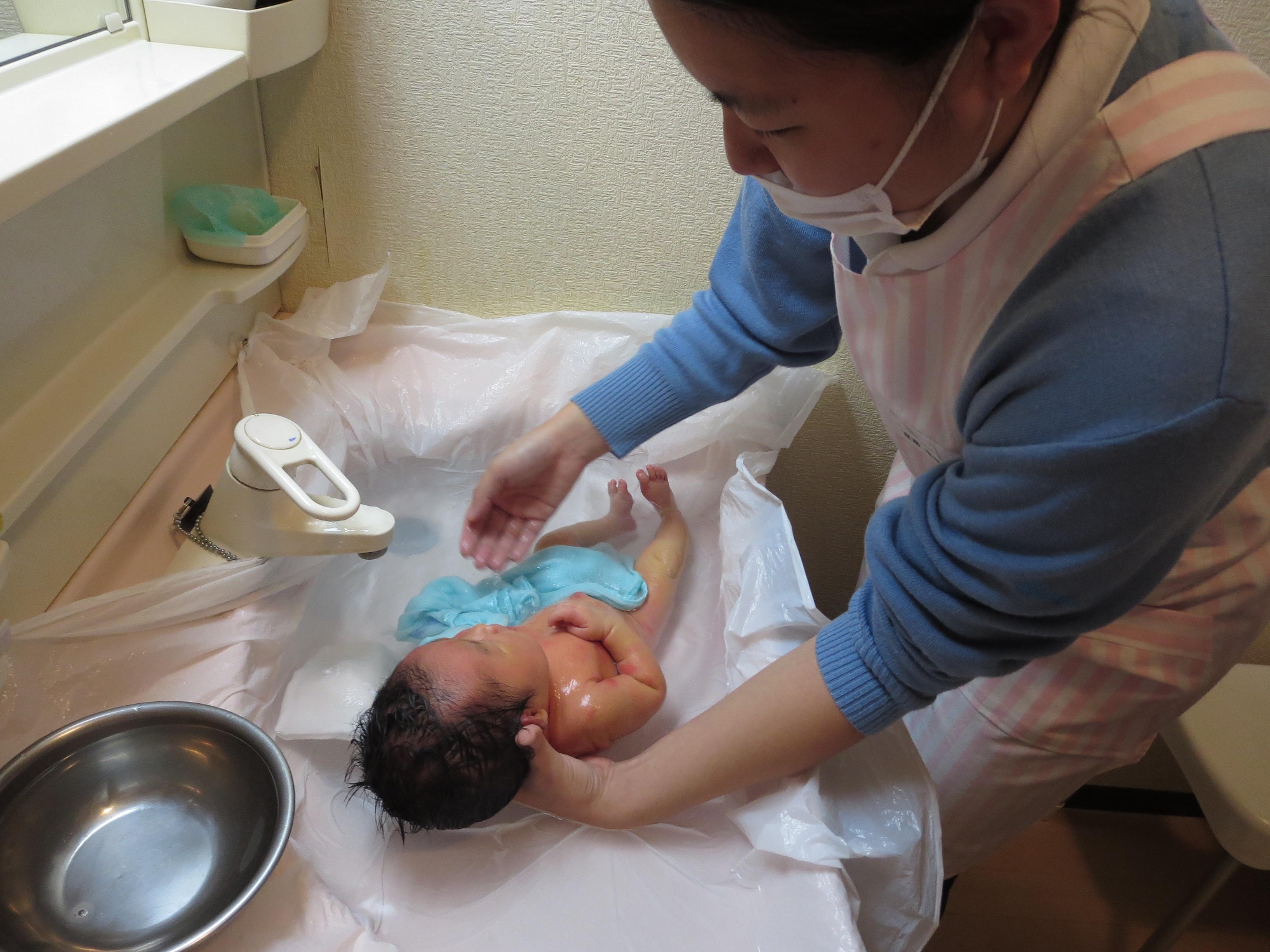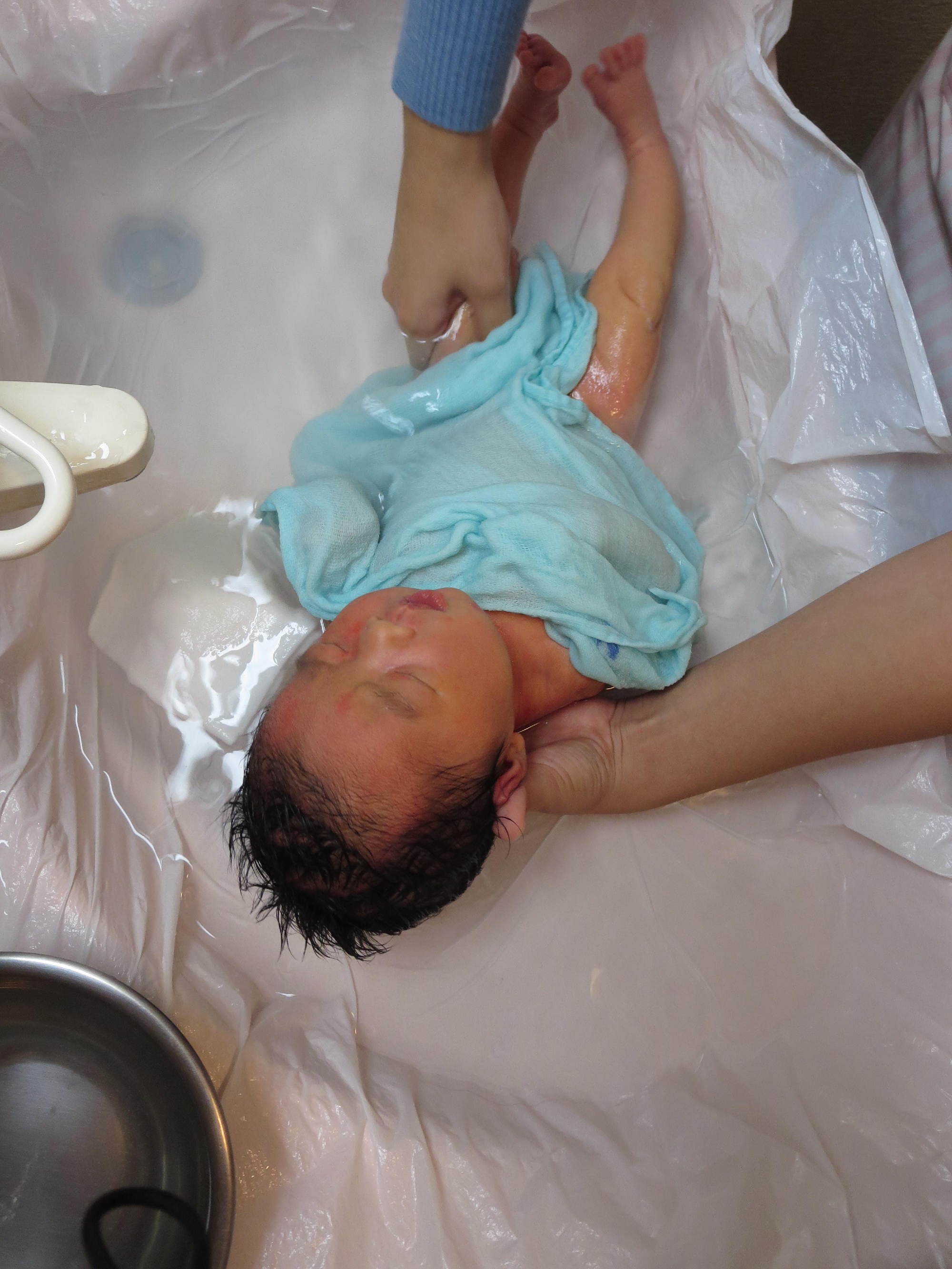 生後3日目。赤ちゃんの初めてのお風呂です。