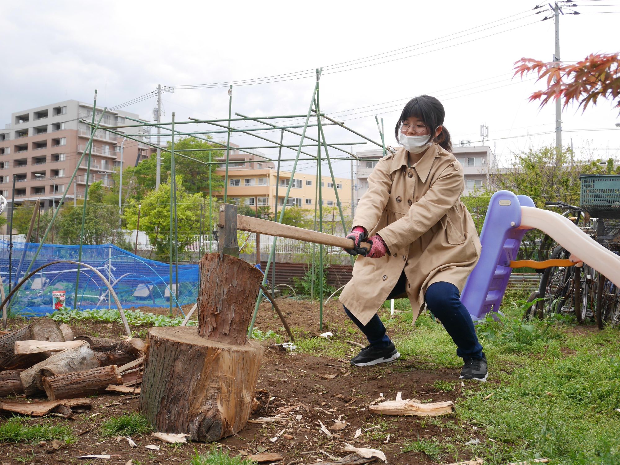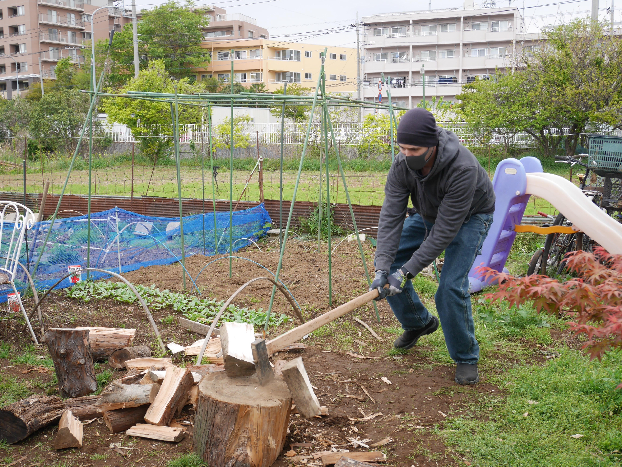 先日、妊婦さんたちが連れ立って薪割りへ行ってきました!