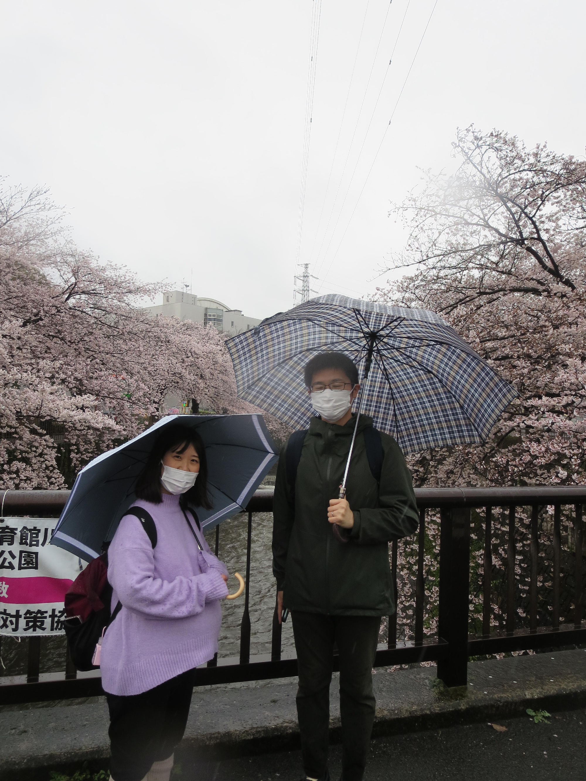 弱めの雨でしたが、歩くとだんだん暑くなる。恩田川の桜をながめて、ゴールについたら、お腹もほどよくすいていました。