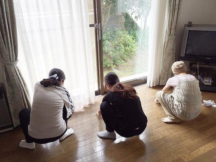 朝集合して、まずは助産師による赤ちゃんの心音チェックと妊婦さんの体調チェック。その後たっぷり2時間ひたすら股割りの姿勢での床拭きや草むしり、スクワットの姿勢で窓ふき。産むために必要な内またの筋肉を鍛え、赤ちゃんに骨盤のほうにおりてきてもらうための作業だそうです。けっこうハードですが上記の楽しみがあるから頑張れます!