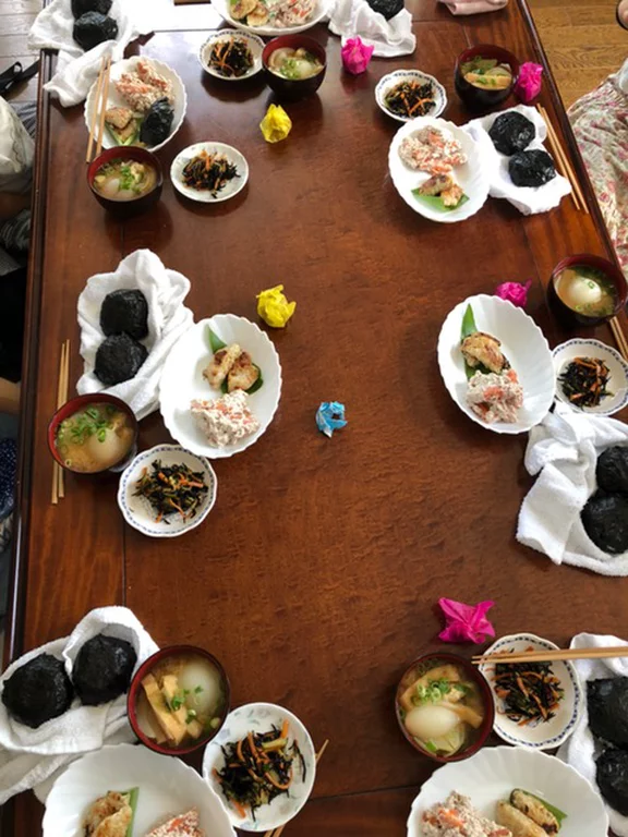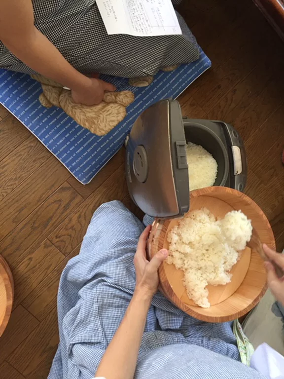 「ご自分の結んだおむすびと、季節のおかず(こちらで用意します)お味噌汁、デザートをみんなでわいわい食べましょう」