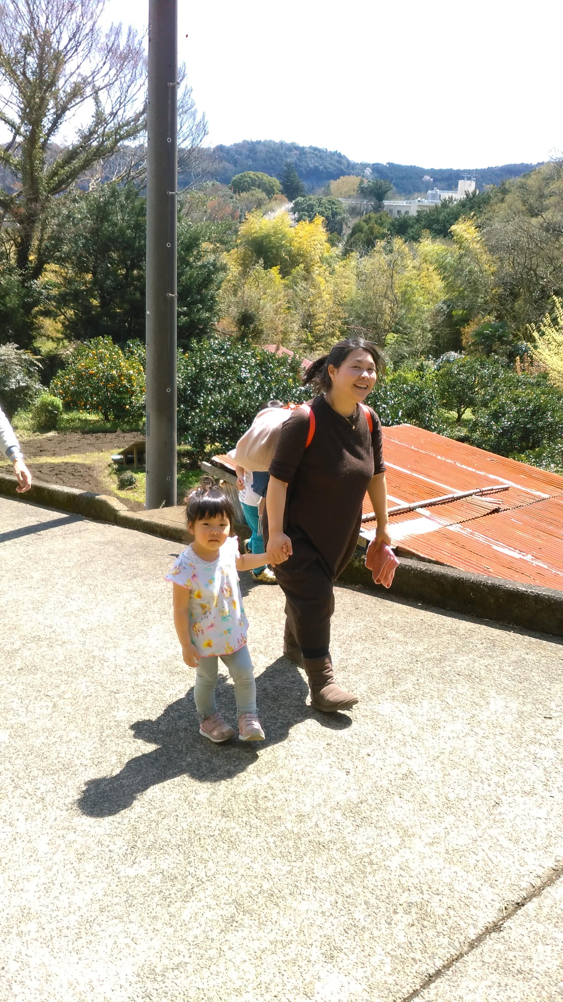 入生田の駅に集合したあとは近くのしだれ桜を目指し、写真を撮るのですが、今回はもう散ってしまっていました。そこからさらに坂を登って頂上の桜を見に行きます。