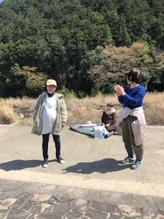 川岸での自己紹介。 初産婦Sさん大きいお腹で頑張った。4月予定日。