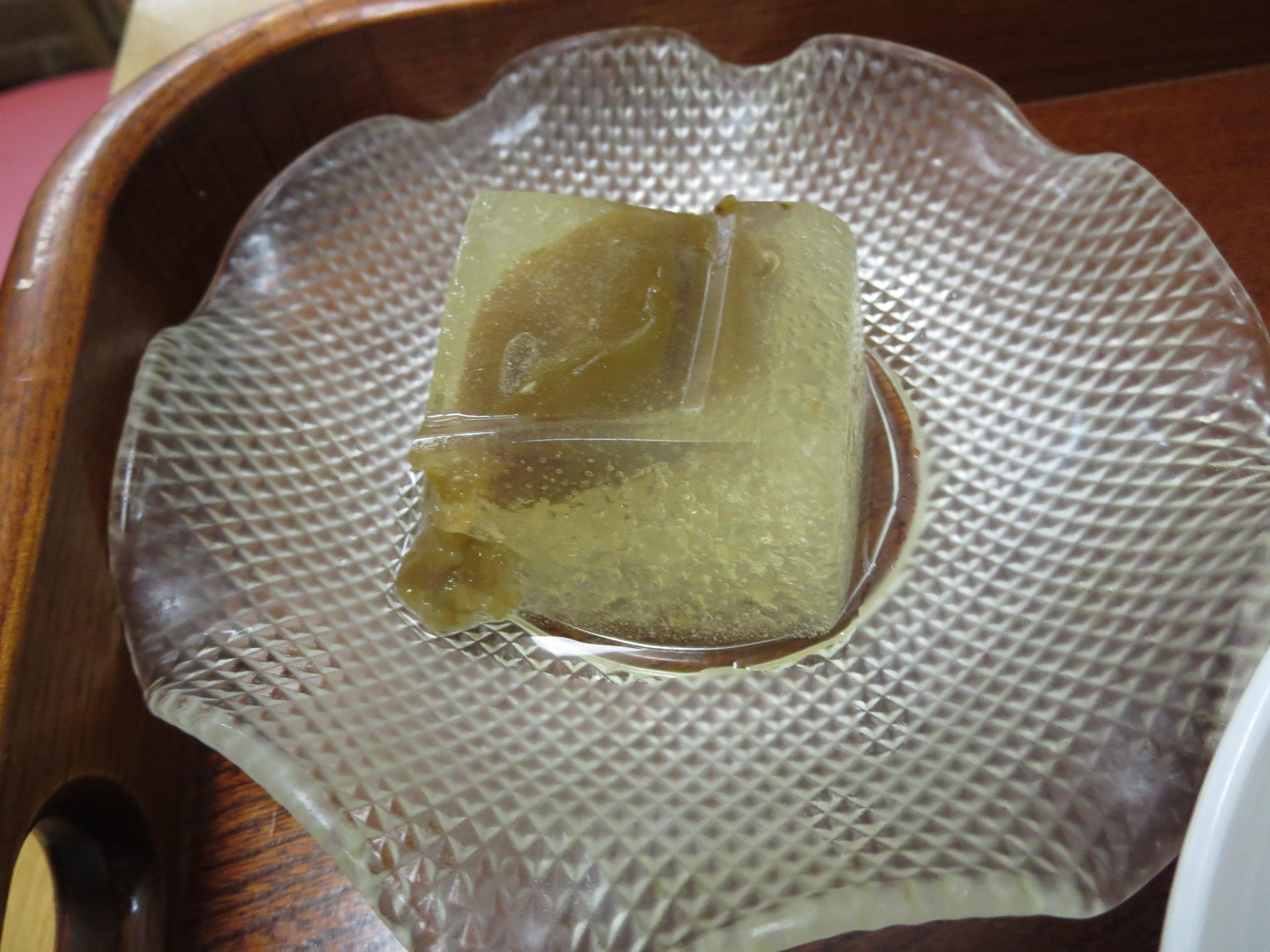 デザートは、梅酢(助産師の仲さんが漬けた)の梅とソーダの寒天。