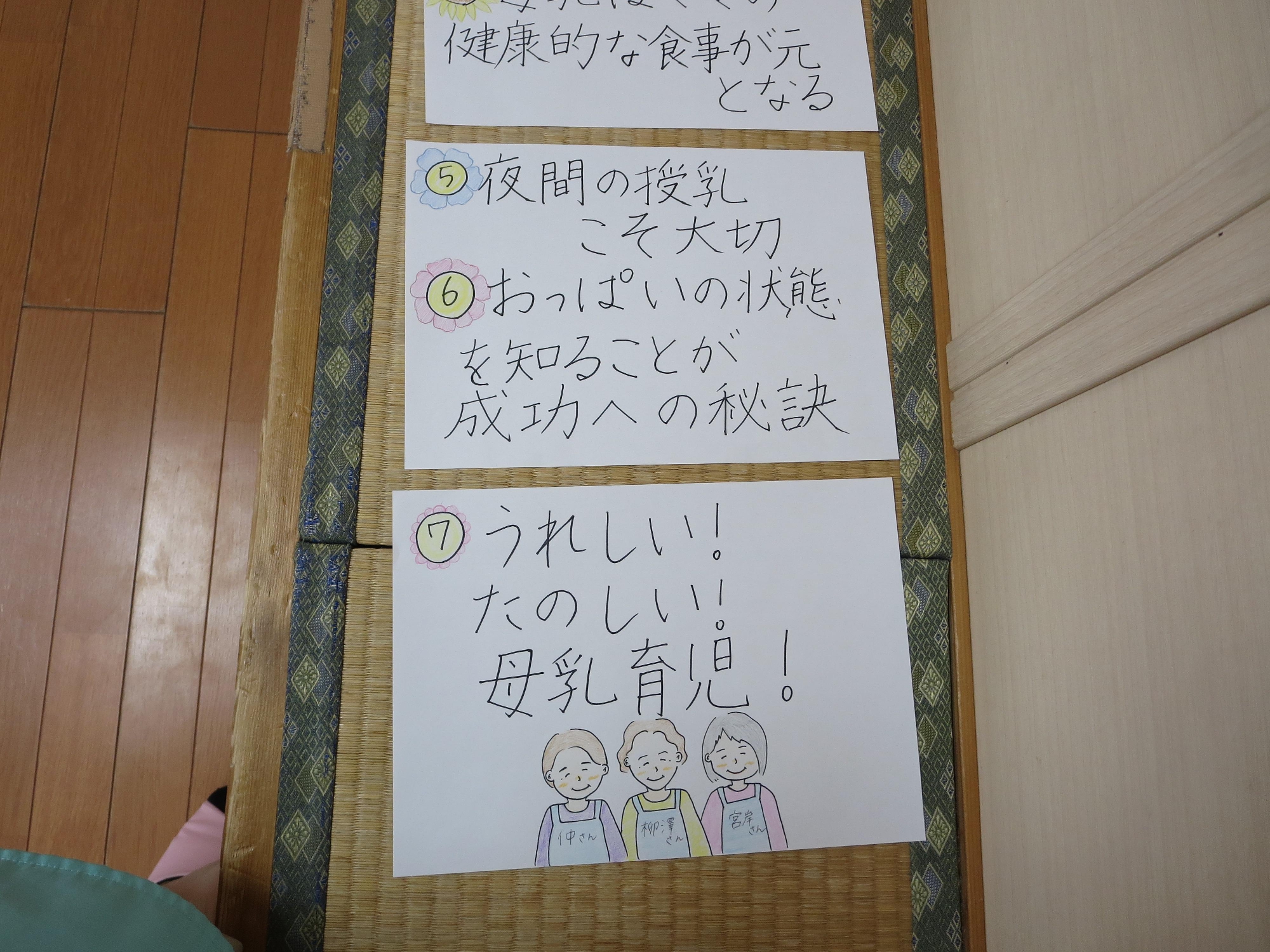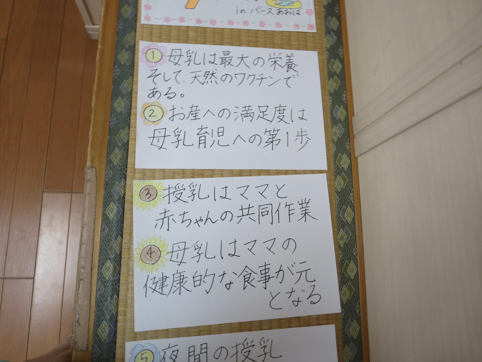 つい先日まで泊まり込みで実習していた学生さん。バースあおばの様子を見て、母乳育児成功のためにはこれが大事なんだ!と母乳育児成功のためのセブンルール@バースあおばを考えてくれました。