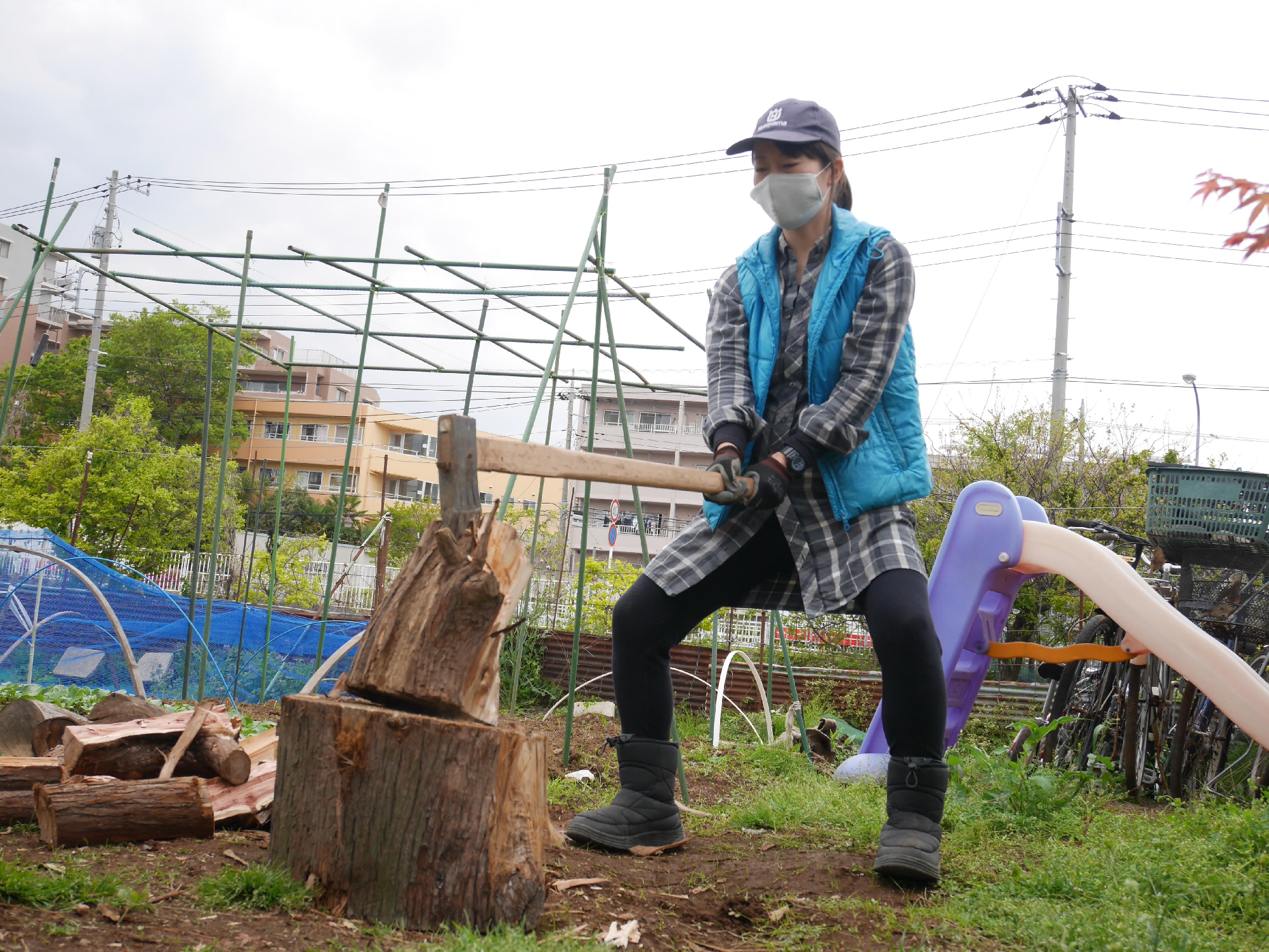 先日、妊婦さんたちが連れ立って薪割りへ行ってきました!