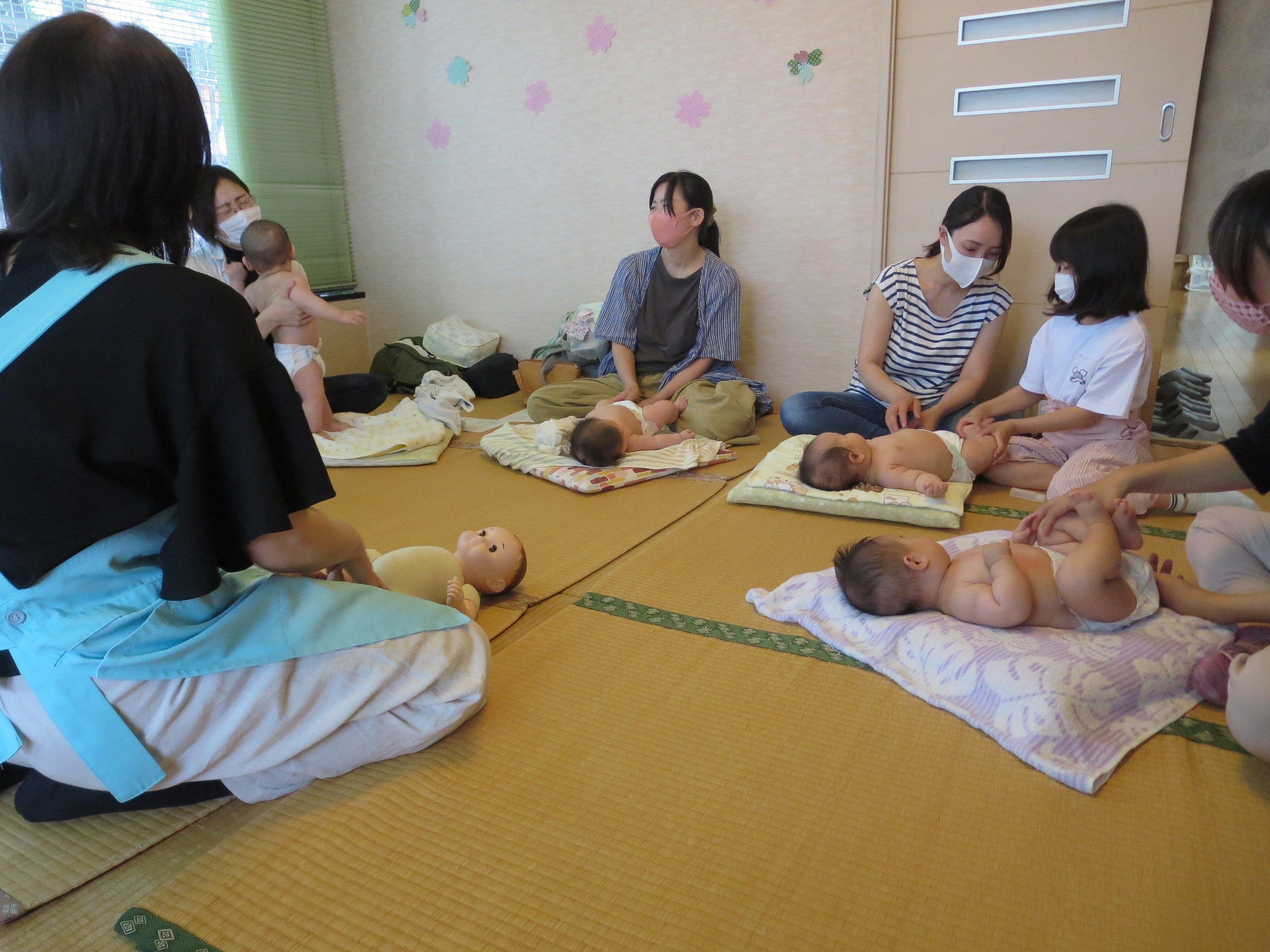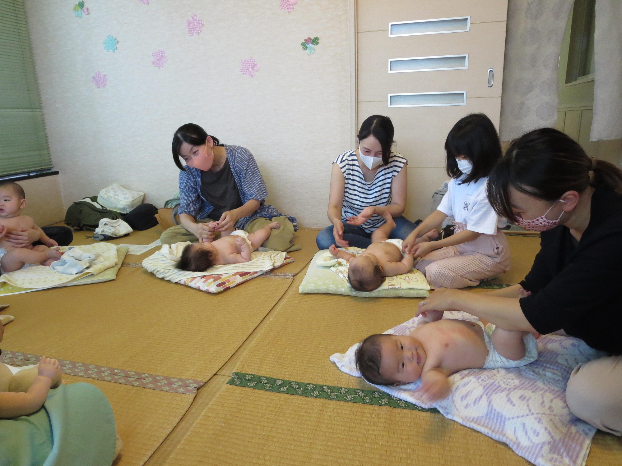 今回も生後2~6ヶ月くらいまでの赤ちゃんが集まり、賑やかにマッサージをしました。