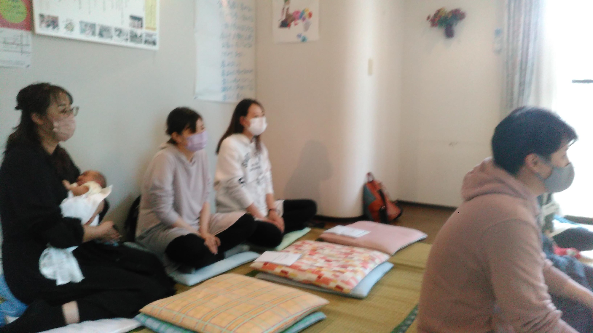 学生さんの説明を真剣に聞きます、産後のママもかけつけてくれました。