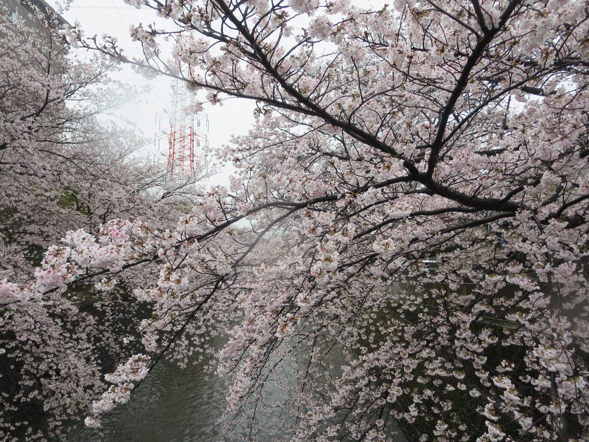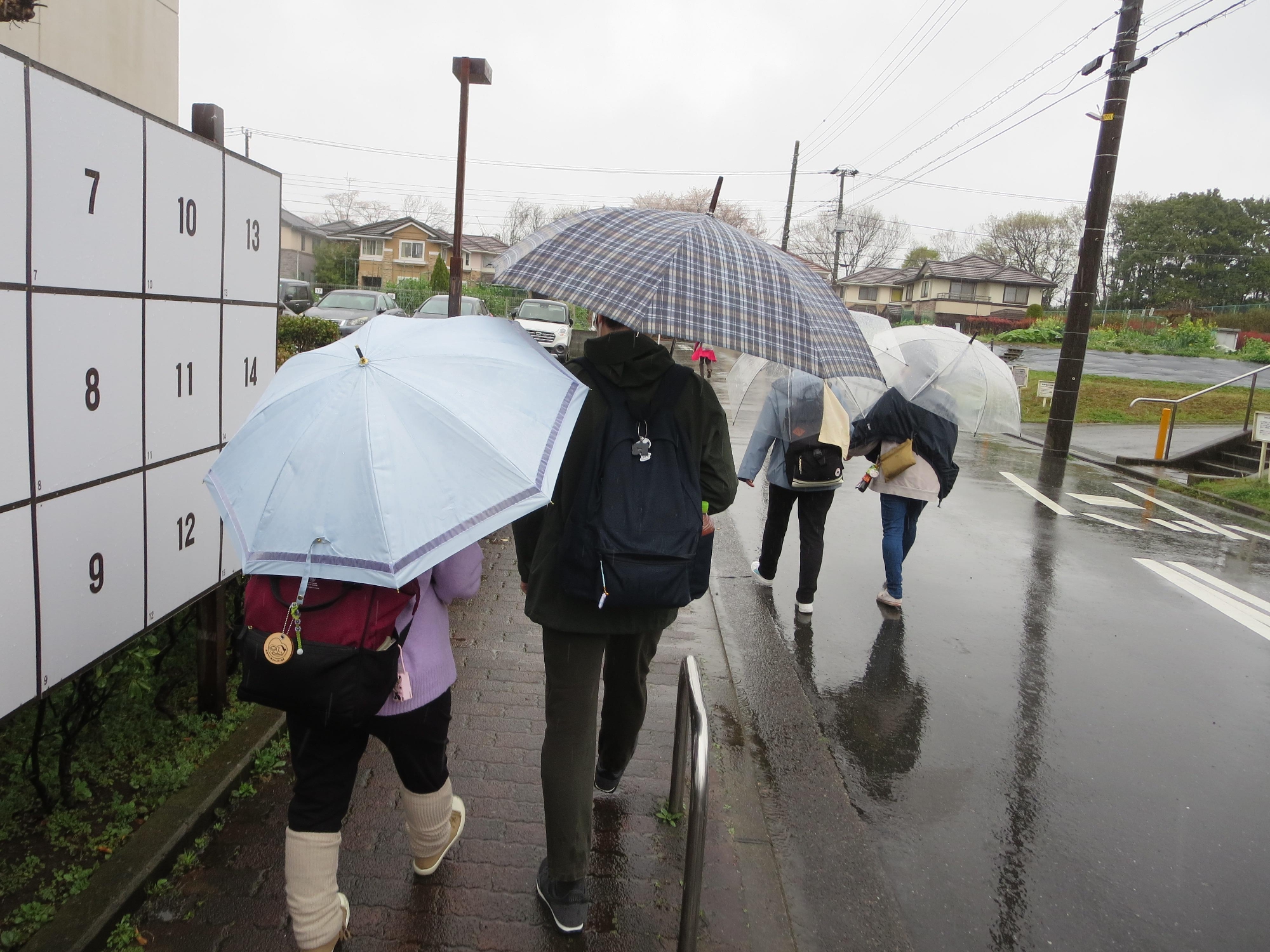 弱めの雨でしたが、歩くとだんだん暑くなる。恩田川の桜をながめて、ゴールについたら、お腹もほどよくすいていました。